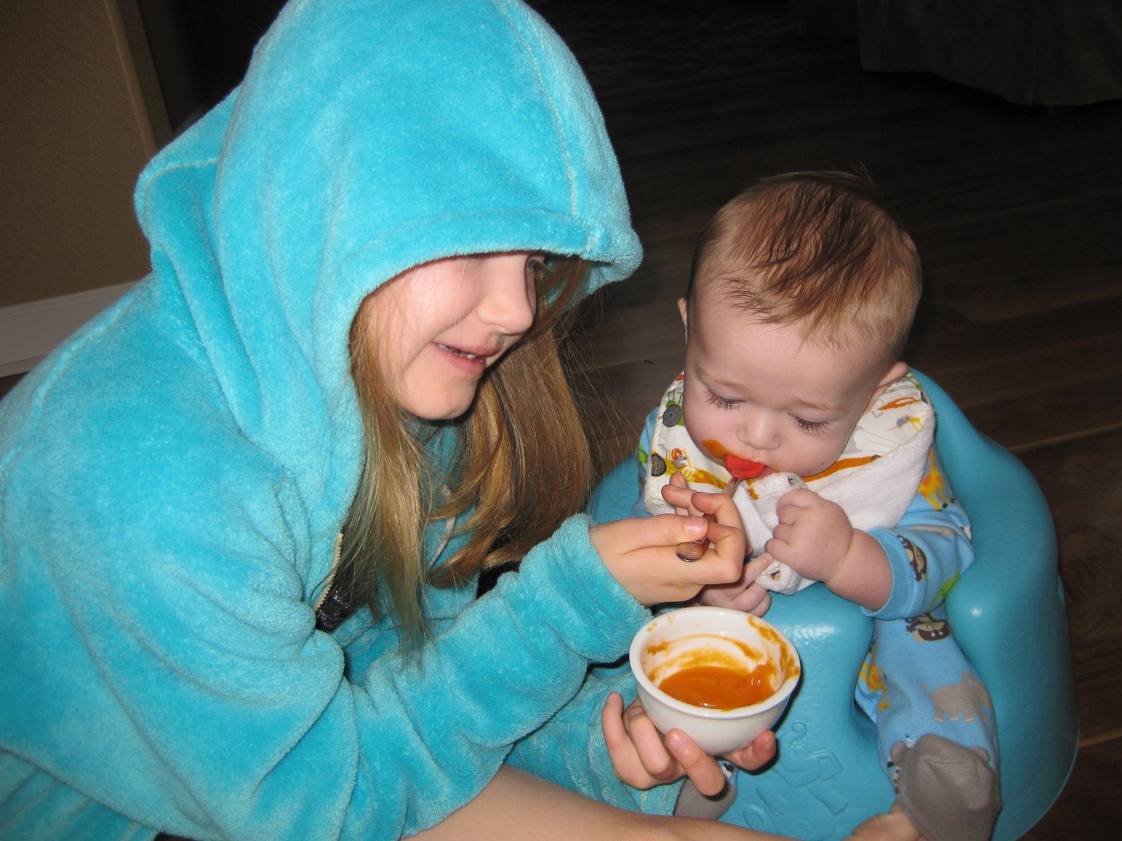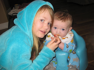 He is so cute! I love how Em wanted to be the first to feed him. How sweet.