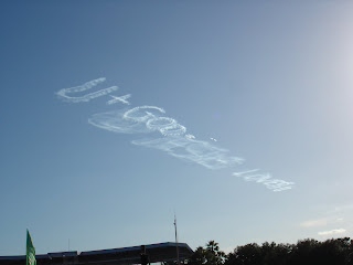 This picture was taken while we walked around Sea World on our recent trip to Florida. If you can’t make it out, in the background it says, ‘JESUS LOVE U’ and the foreground says, ‘U + GOD = ‘. The pilot was still completing his thought. If I were to guess what the answer to that equation were to be, there are many I could speculate…perhaps ‘U + GOD = PEACE or LOVE or HOPE or FREEDOM or ETERNAL LIFE or THE GREATEST RESTORED LOVE RELATIONSHIP SINCE THE LITTLE MISHAP IN THE GARDEN…’