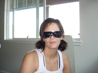 Move onto Friday morning when I went to an ophthalmologist to have my eye checked out. You see, for the prior week, I wore my glasses, which the glasses alone are fine, it’s the wearing them part I abhor, to give my right eye a break. My vision in my right eye has gradually become blurry, regardless of corrective lenses. So, he took one look at my eye and told me that it looked like I had rubbed sand paper all over it. He told me that I am not allowed to wear my contacts until further notice. I asked if I could just “quick get Lasik?” but he informed me that he can’t do surgery on my cornea in that condition. I told him I just started training for a marathon walk, “How am I supposed to work out?” “Like anyone else that wears glasses and works out”, he stated plainly. “But it’s sunny, I don’t have prescription shades.” “Oh, you can grab a few of my complimentary Post-Mydriatic Sunglasses on your way out…they are actually kind of cool.”